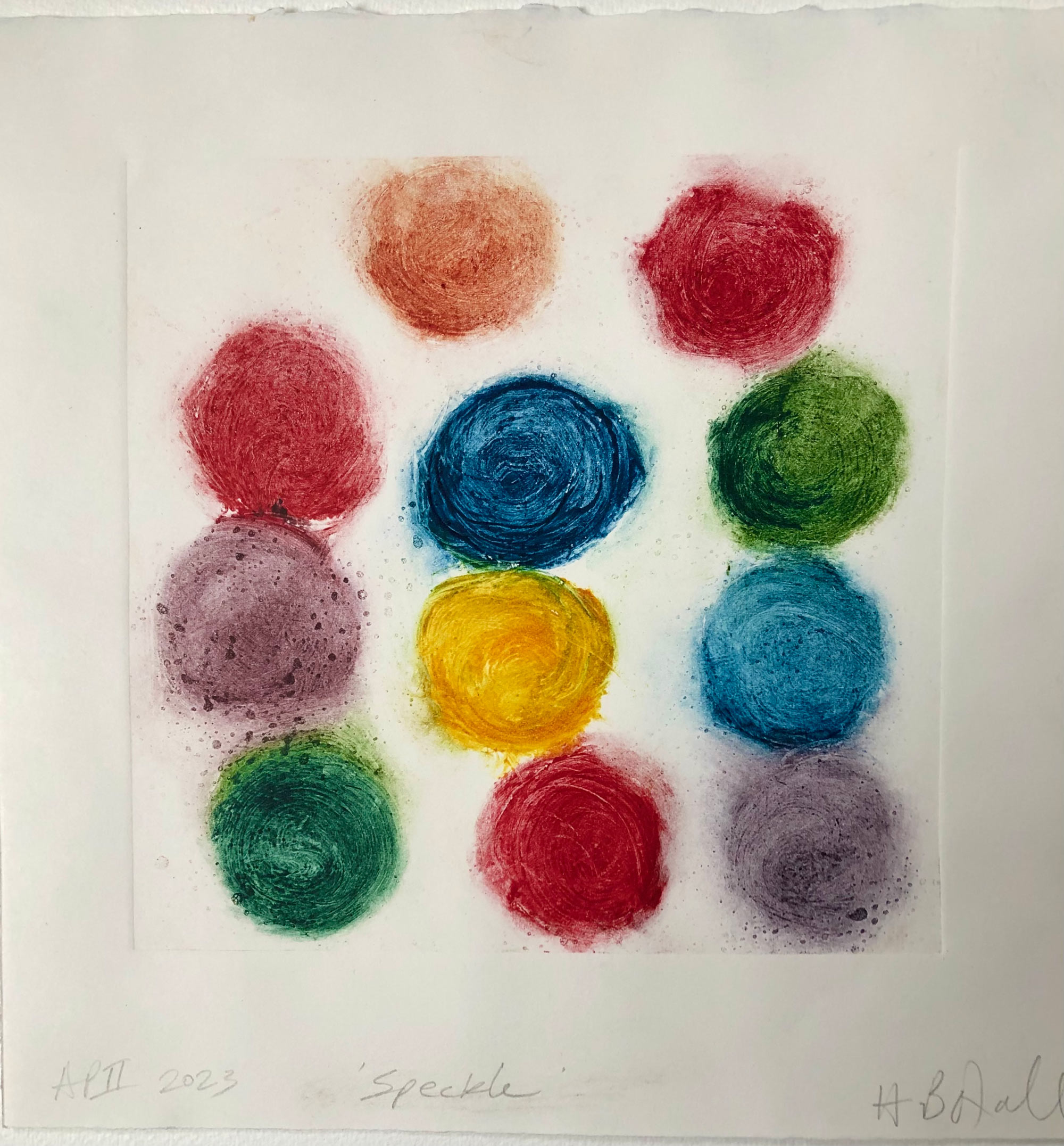 Monotype printmaking is a spontaneous, painterly method of printing. The technique creates a unique, one-of-a-kind print. Ink is usually applied to a smooth non-absorbent surface, and then transferred to paper, using a press or by hand. The method allows artists to build up layers of colour, use of stencils and mark-making effects. These create a painterly style.