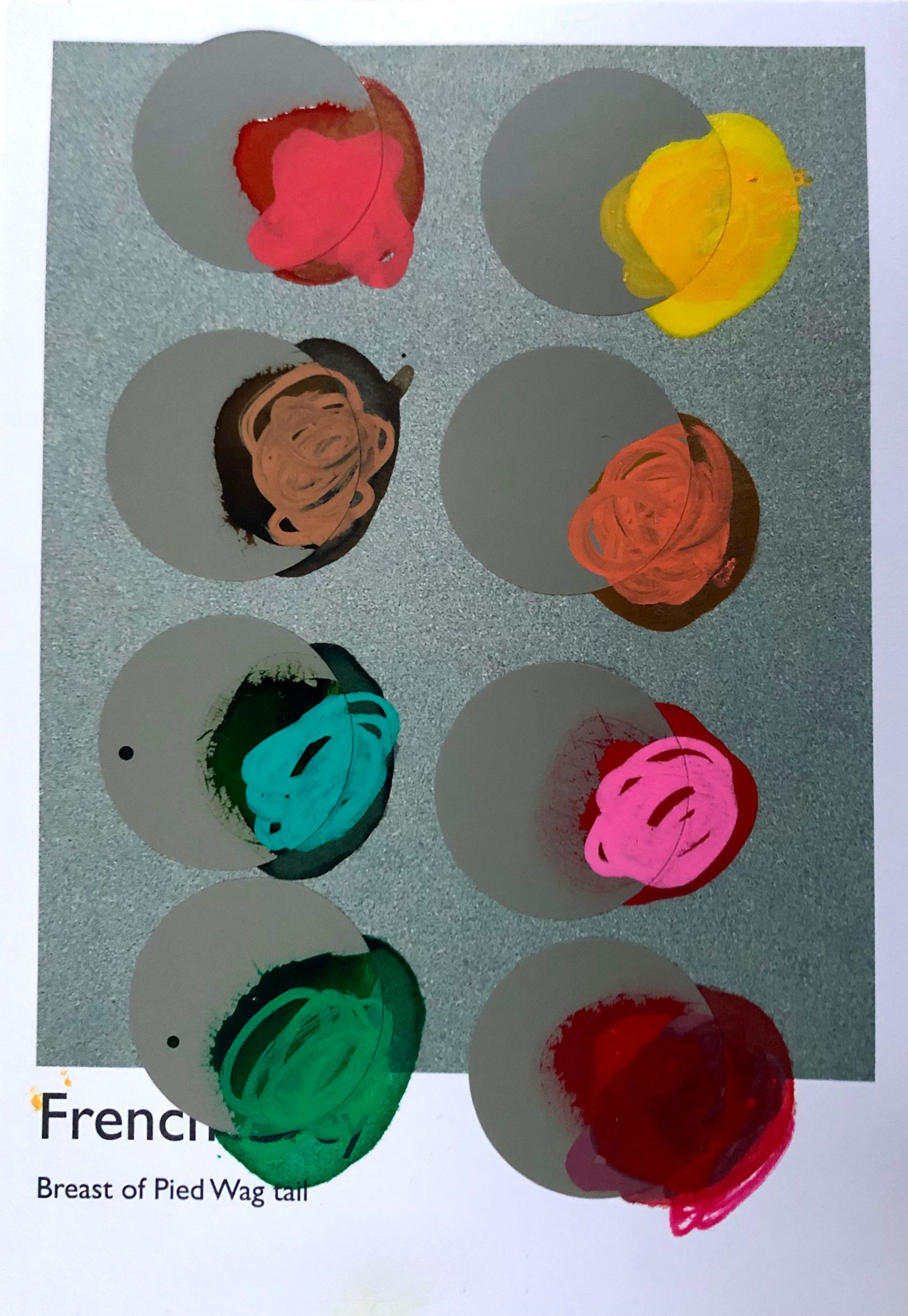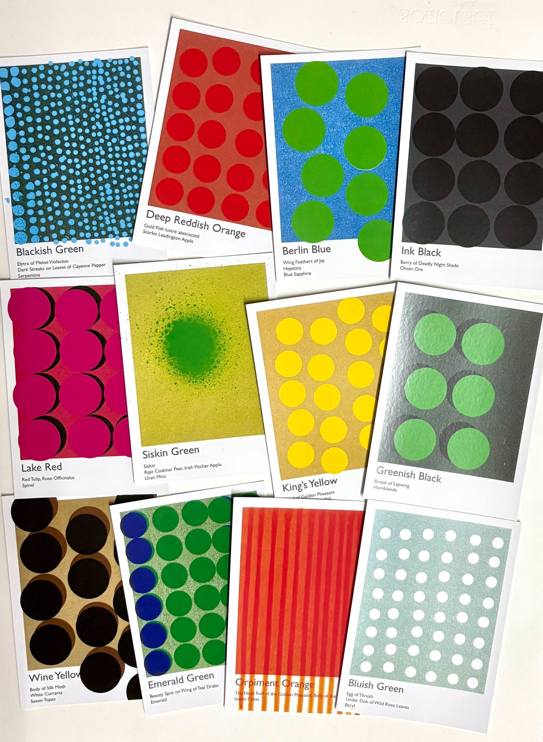 Collage sketches and drawing using readymade colour stickers / acrylic pen and ink on Werner’s Nomenclature of Colour postcards. A set of 12 reproduction postcards are available for sale at £25 including postage and packing.